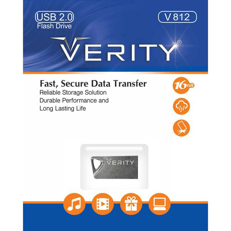 فلش VERITY V812 16GB با ظرفیت ۱۶ گیگابایت یکی از این فلش های ۱۶ گیگابایتی مناسب برای استفاده روزمره است که کیفیت مناسب و مطلوبی نیز دارد. این فلش مموری بدنه ای فلزی دارد که در مقابل خط و خش مقاوم است. این فلش با ابعاد بند انگشتی که دارد به راحتی خم و خراب نمی شود و جای زیادی هم نمی گیرد و بسیار خوش دست است. رابط کاربری فلش VERITY V812 16GB از نوع USB 2.0 است که سرعت مناسب و مطلوبی را به شما می دهد. شما می توانید اطلاعات خود را به راحتی با استفاده از این فلش انتقال دهید.. این فلش با گارانتی مادام العمر آسان سرویس(شرکت بازرگانی صبا) عرضه می شود.