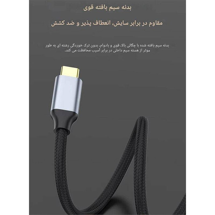 کابل به طول 200 سانتی متر با روکشی از الیاف بهم بافته شده، مقاوم در برابر کشش و پارگی