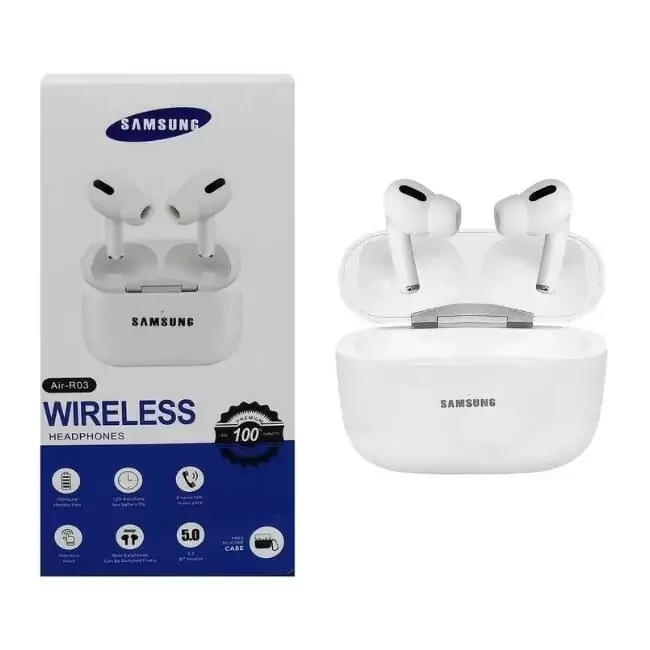 هندزفری بیسیم با طراحی مشابه ایرپادهای کلاسیک، مجهز به بلوتوث نسخه 5.0، کیفیت صدای مناسب و کاهش نویز تا 25dB. دارای محافظ سیلیکونی و بند نگهدارنده، مناسب برای استفاده روزمره، تماسهای کاری و پخش موسیقی با دوام باتری بالا.