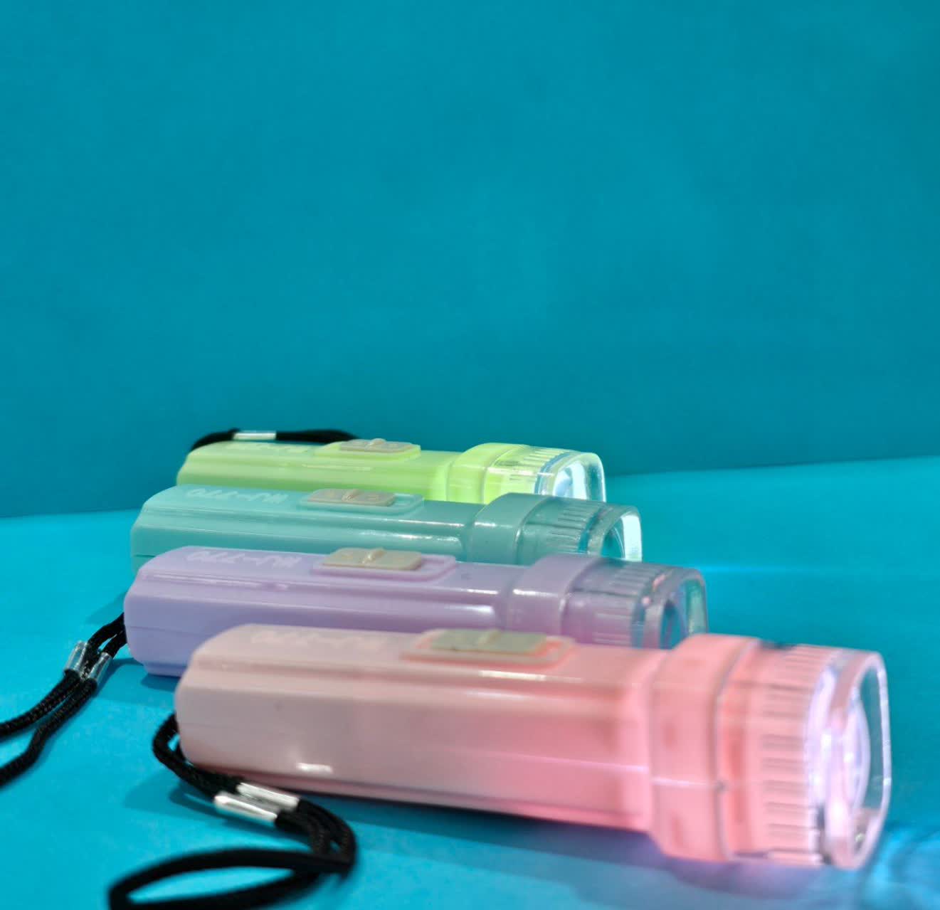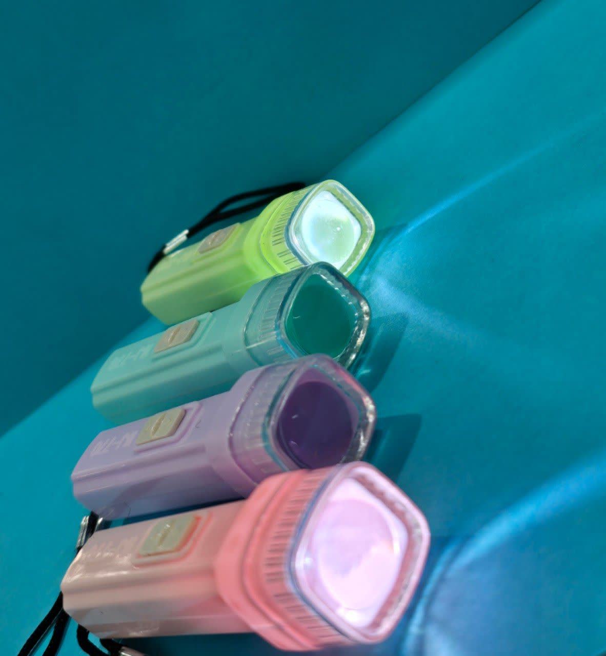 این چراغ قوههای زیبا با طراحی رنگارنگ (آبی، بنفش، سبز، صورتی) مناسب برای کودکان و بزرگسالان بوده و بهراحتی در کیف یا جیب جا میگیرند. مجهز به بند دستی برای حمل آسان و دکمه روشن/خاموش روان، این محصول انتخابی عالی برای کمپینگ، سفر، خانه یا هدیه به کودکان است.